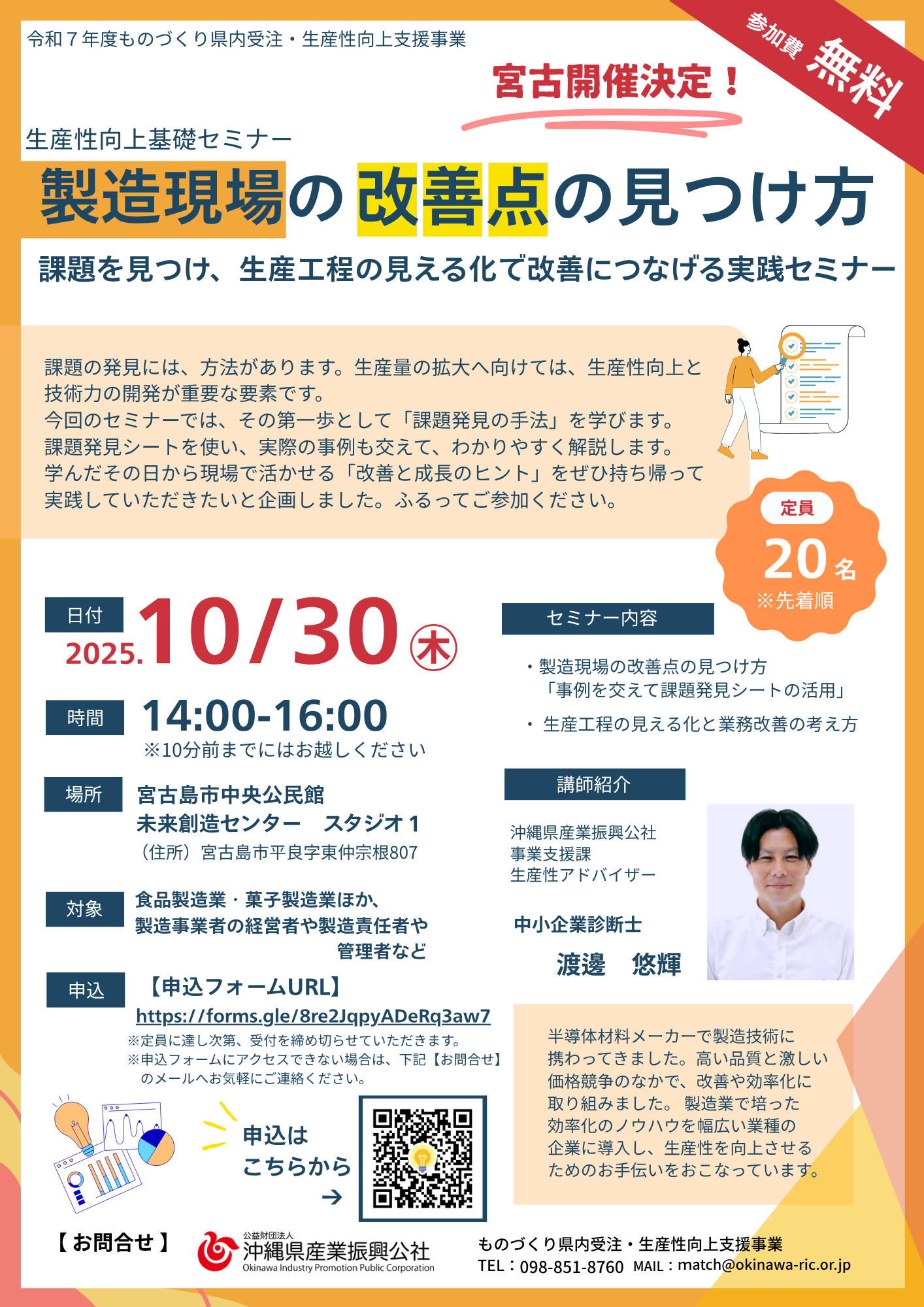 製造業の事業者向けの生産性向上セミナー「製造現場の改善点の見つけ方セミナーin宮古島」のご案内